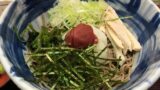 ミールクーポンと引き換えできるのは、冷やし山菜とろろそば(713円)か、梅あおさそば(713円)のどちらか。